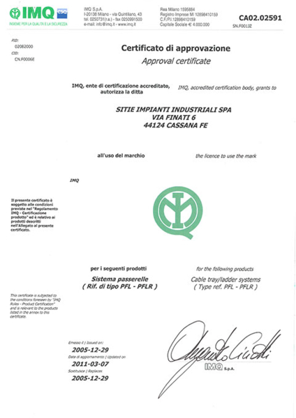 • Approval Certificate Cable Tray / Ladder systems type ref PFL/PFLR