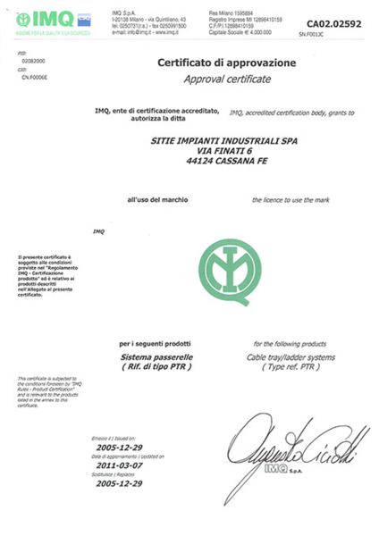 • Approval Certificate Cable Tray / Ladder systems type ref PTR