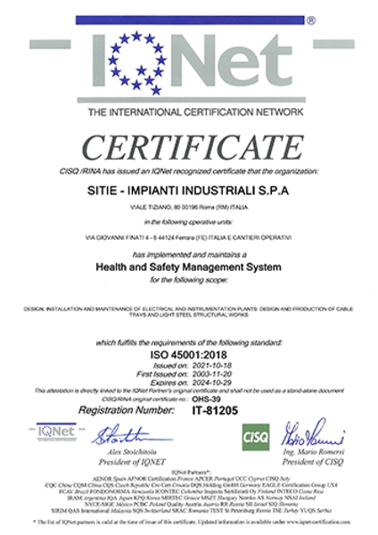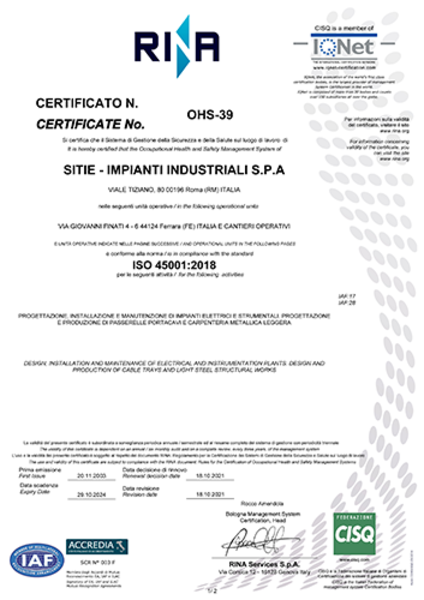 • Health and Safety System Certificate - BS OHSAS 45001:2018