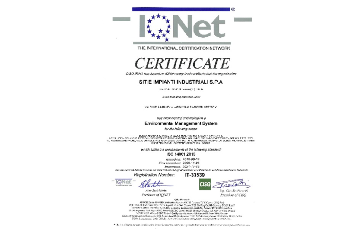 SITIE obtained the certifications ISO 9001:2015 & ISO 14001:2015, with regard to the adaptation of its quality management and environmental management systems to the new international standards.